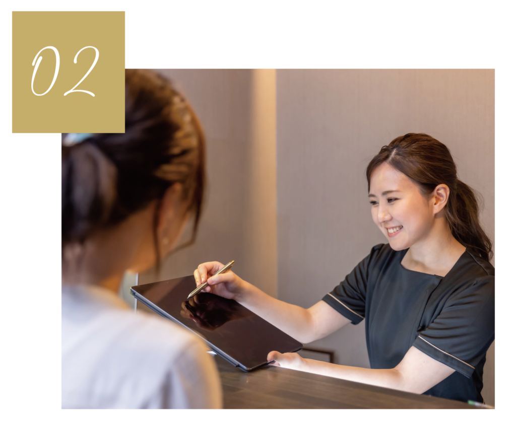 10 分〜20 分前にお越しくださいませ。施設利用のご説明がございます。受付カウンターでご予約をいただきましたお客様のお名前をお伝えください。